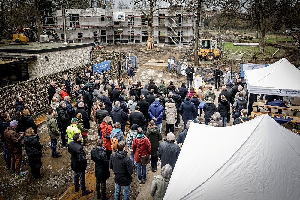 „Wir freuen uns außerordentlich über den raschen Baufortschritt. Nachdem wir so lange und so viel über die Notwendigkeit eines Kinderschutzhauses für Essen gesprochen und für unser Neubauprojekt geworben haben, sind wir begeistert, dass wir nun Worte in Taten umsetzen“, sagt Prof. Dr. Ulrich Spie, Vorstandsvorsitzender des Kinderschutzbundes Essen. „Mit dem Richtfest möchten wir uns ganz besonders bei unseren treuen Freunden und großzügigen Förderern bedanken, die den Neubau mit ihren Spenden erst ermöglichen.“ Beim Richtfest hatten die Besucher die Gelegenheit, einen ersten Eindruck des Schutzhauses zu gewinnen.